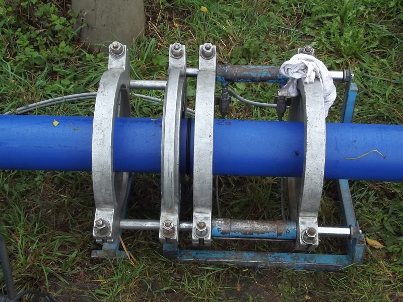 Hier der Rohrhalter, in dem die Rohre verschweißt werden.