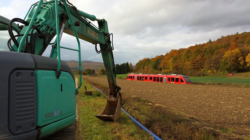 Die Arbeiten an der Bahn (Schranken- und Signalbau) laufen zur gleichen Zeit ...