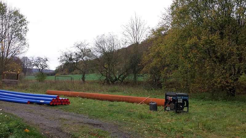 Hier liegen die TW-Rohre vor dem Bolzplatz am Bahnhof ...