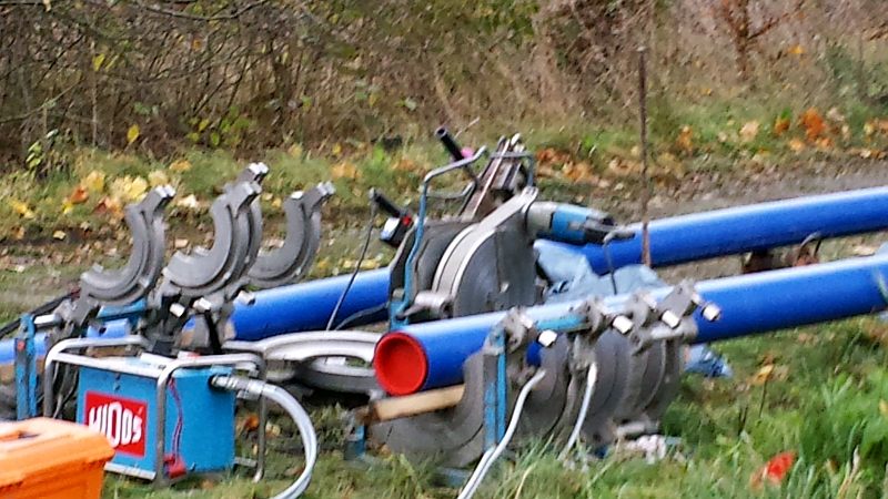 Hier die Spannvorrichtung, in der die Rohre miteinander verschweißt werden ...