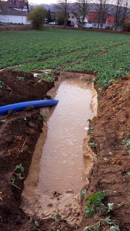 Schlammbad für Rohr und Stromkabel, damit es gut rutscht ...