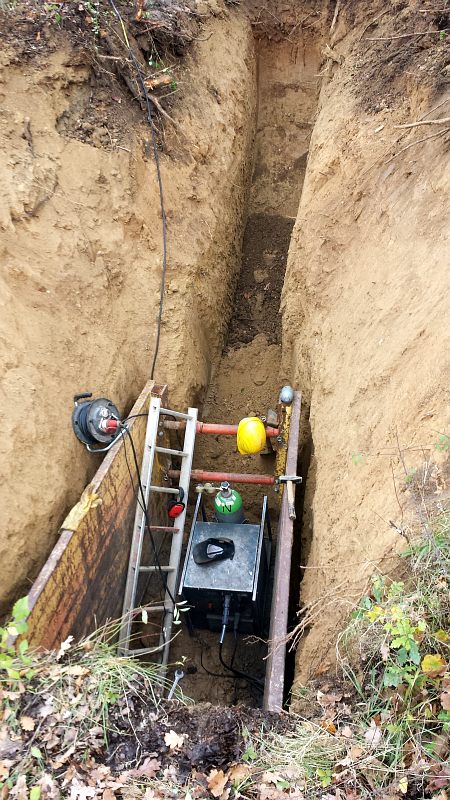 und die innen befindliche Erde wird mit einem Spülwagen dann herausgespült ...