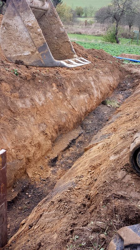 Hier war das Stahlrohr drin, der Graben kann teilweise zu ...