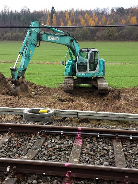 Auf der anderen Bahnseite Steht der Bagger und wartet auf den Einsatz