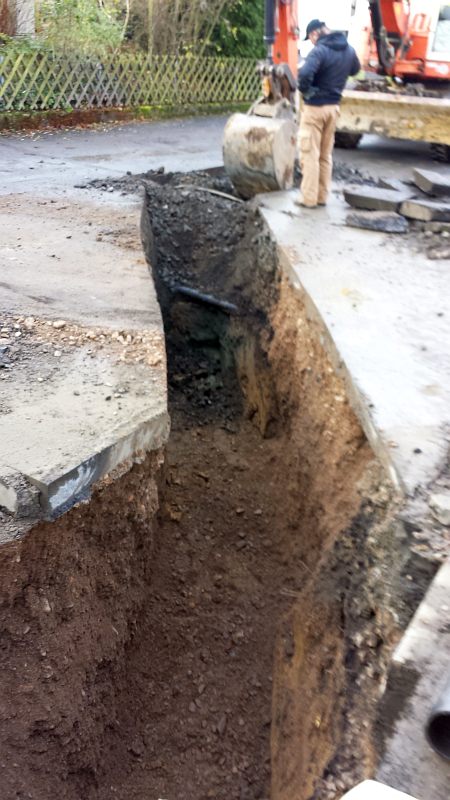 ... leider viele Leitungen unter der Straße, vorsichtiges Arbeiten ...