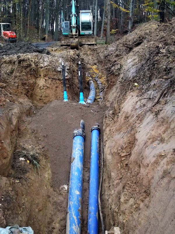 Ecke Lindenberg/L554 werden Rohre und Kabel verbunden